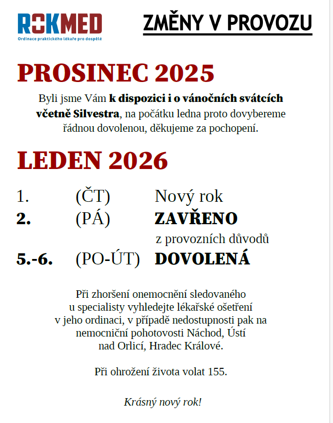 Úvod > Obecní úřad > Informace pro občany > Změny v provozu ordinace PL