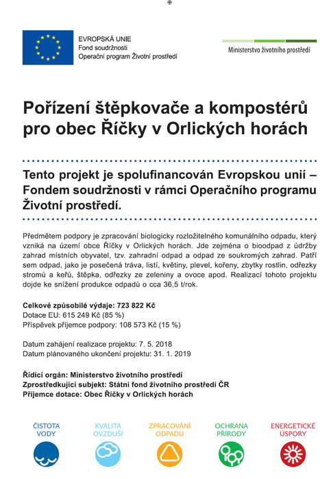 Úvod > Obec > Projekty > Pořízení štěpkovače a kompostérů pro obec Říčky v Orlických horách