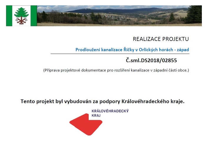 Úvod > Obec > Projekty > Prodloužení kanalizace Říčky v Orlických horách - západ
